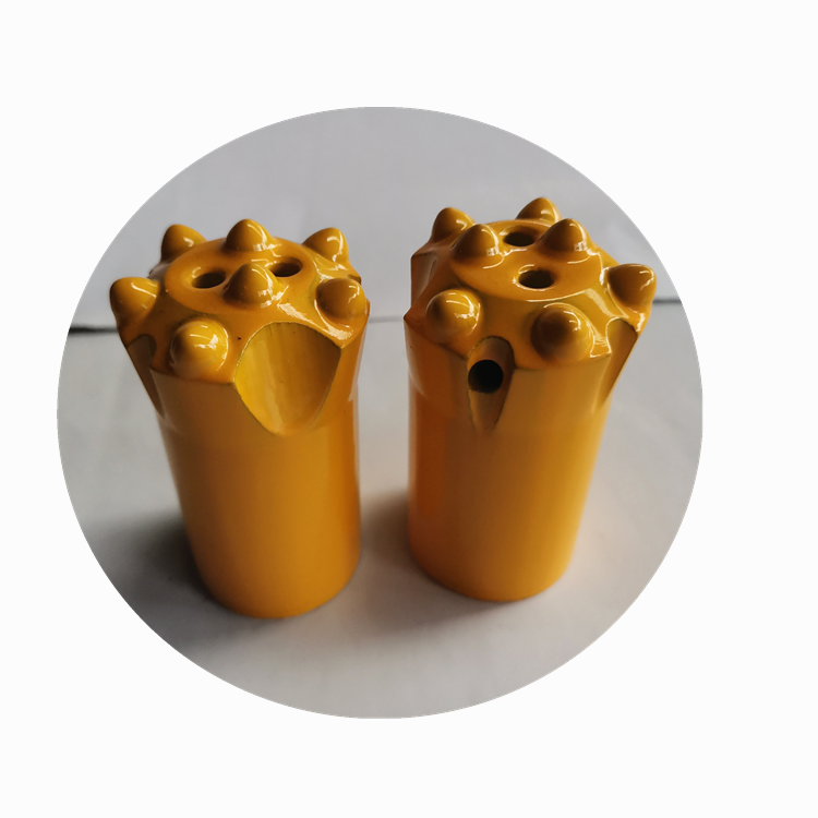 Durable tungsten carbide taper with 7 button bit insert and 4 holes for rock drilling